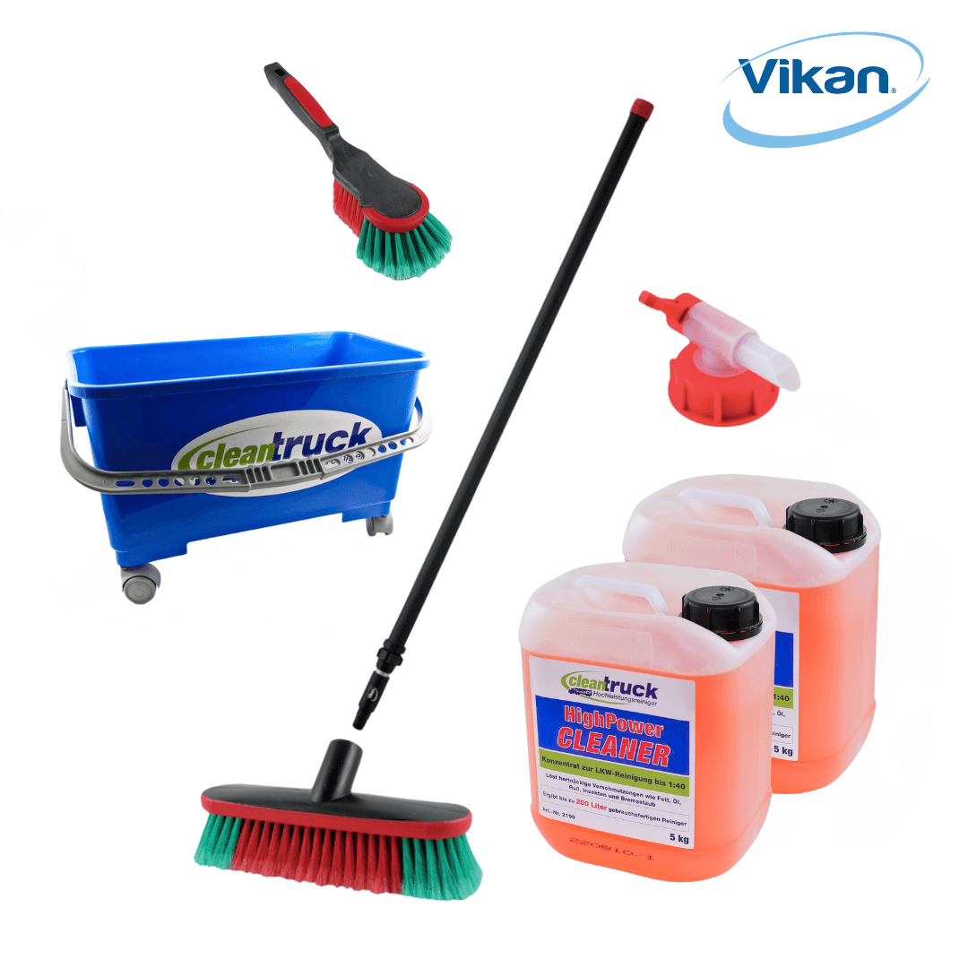 Effektiv und kräftig: Der alkalische HighPower Cleaner reinigt hygienisch und löst hartnäckige Verschmutzungen sowie schmierige und talgige Beläge im Handumdrehen. Öl, Fett, Ruß und Insekten sind kein Problem mehr – ganz ohne viel Bürsten zu müssen. Mit diesem Reiniger erstrahlen die Farben der LKW Plane, des Lackes, Führerhauses und der Ladefläche fast wieder wie am ersten Tag. Der HighPower Cleaner ist für alle Oberflächen geeignet (DEKRA geprüft).